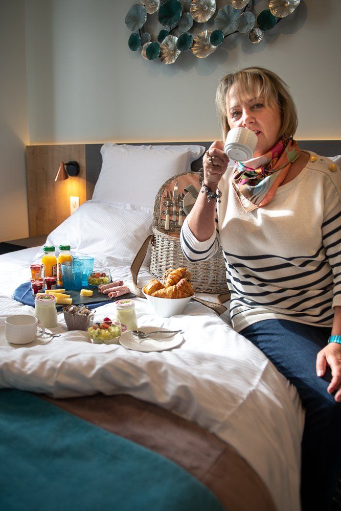 Sur commande. Petit déjeuner servit en panier déposé devant la porte : supplément de 12€ par personne
